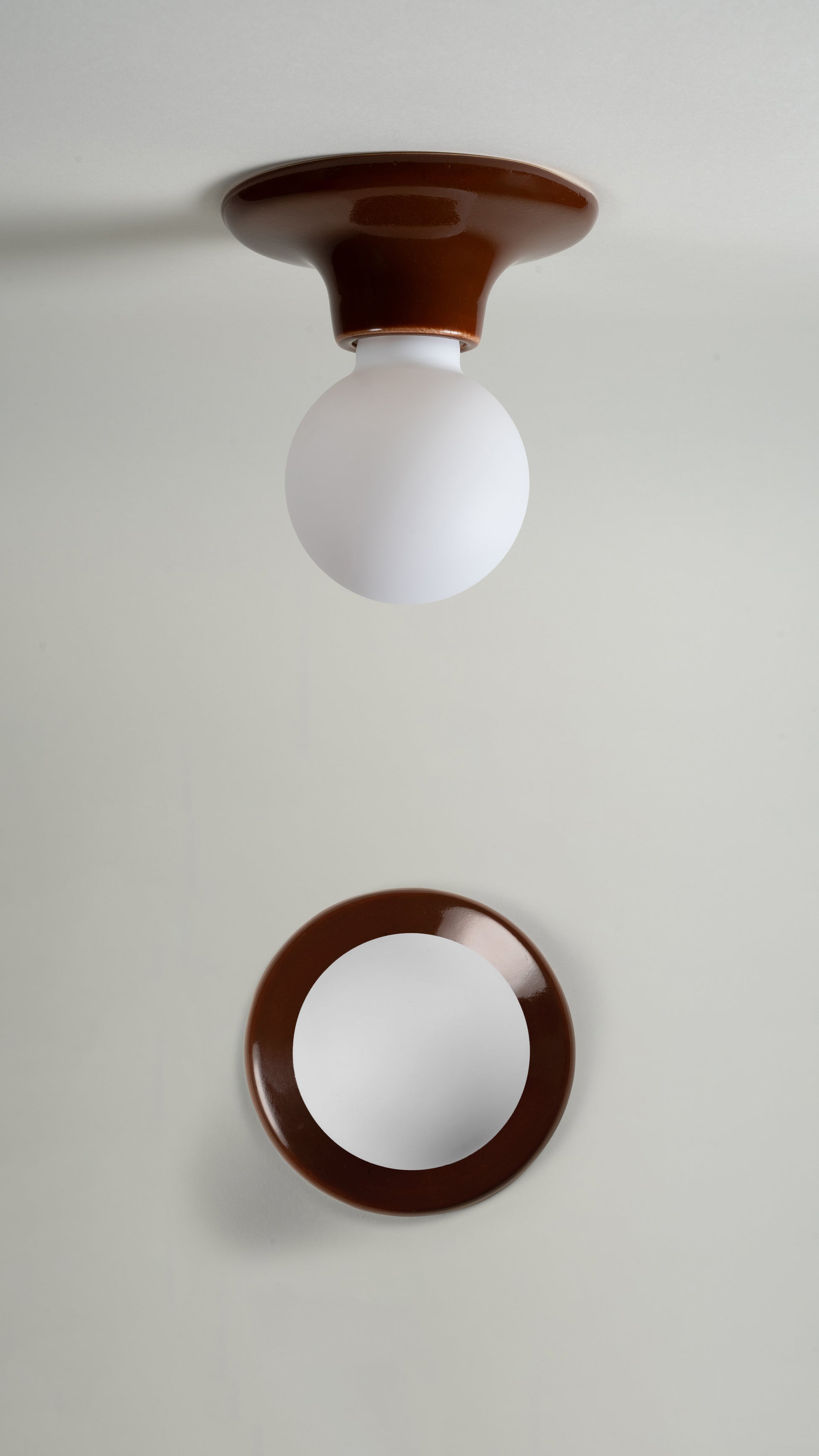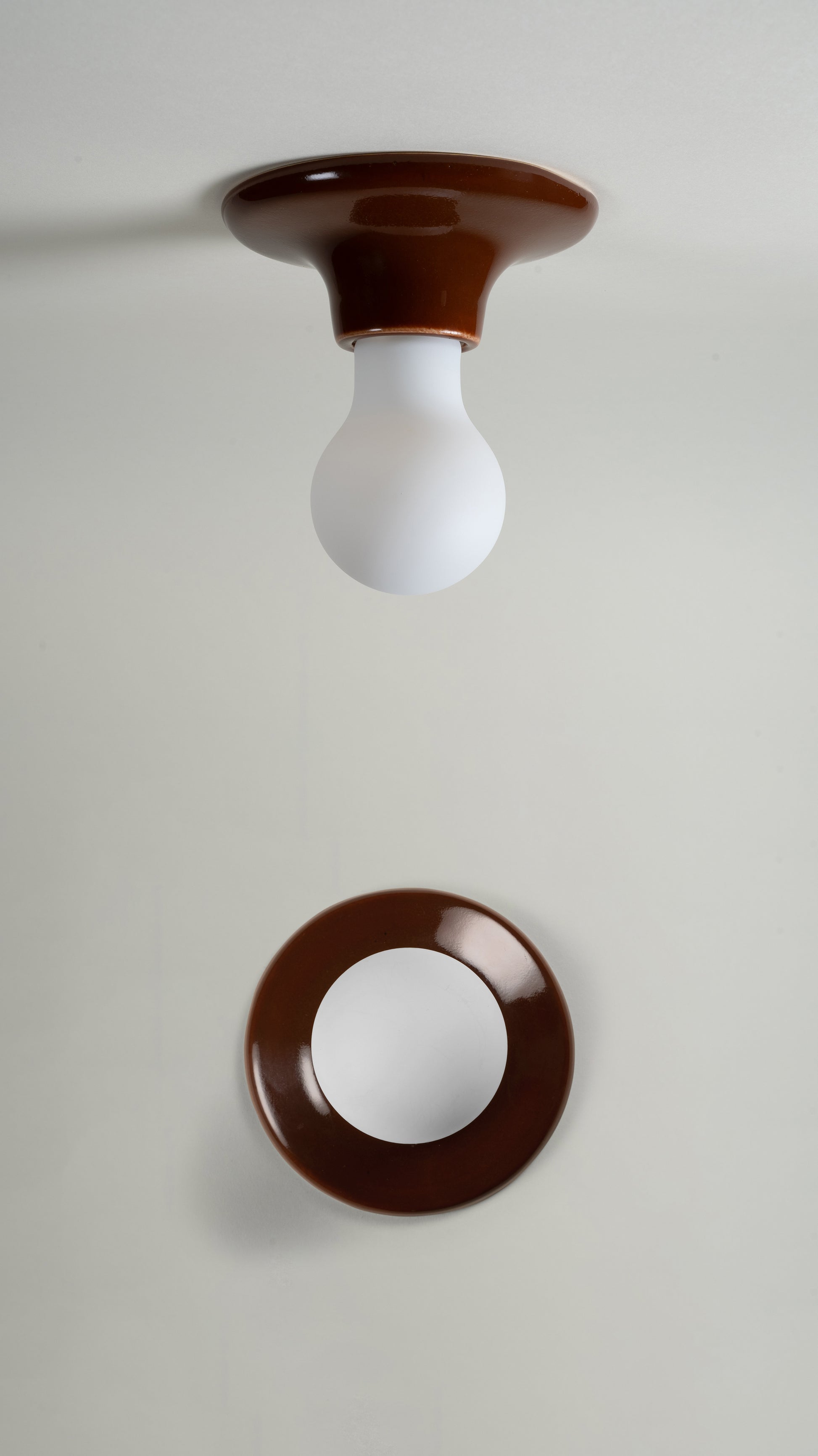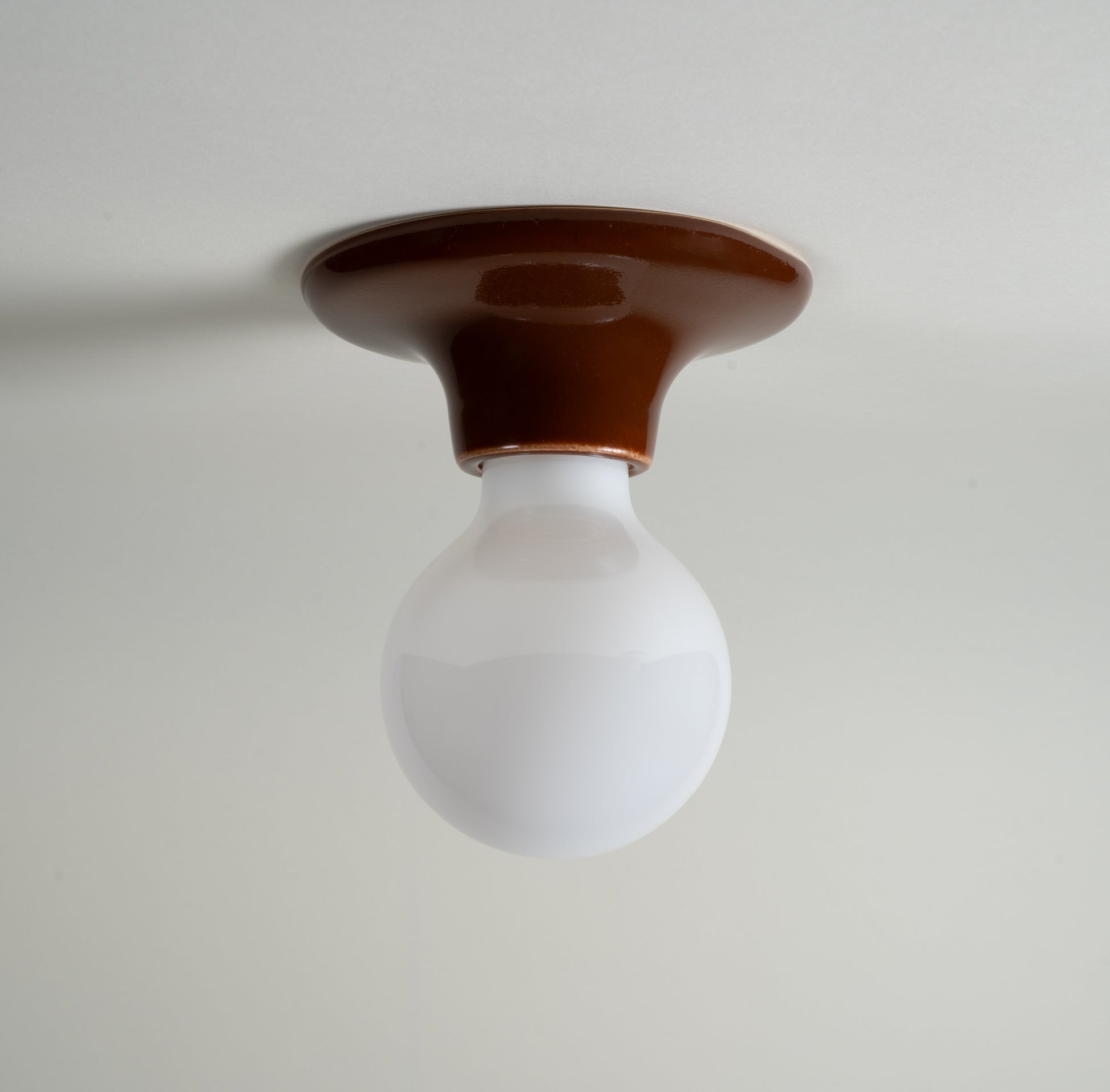 Designed to compliment a range of styles, it's equally at home as a wall or ceiling fixture and mounts to a standard junction box. Available in 18 glazes - subtle variations in surface texture are part of its unique character.
