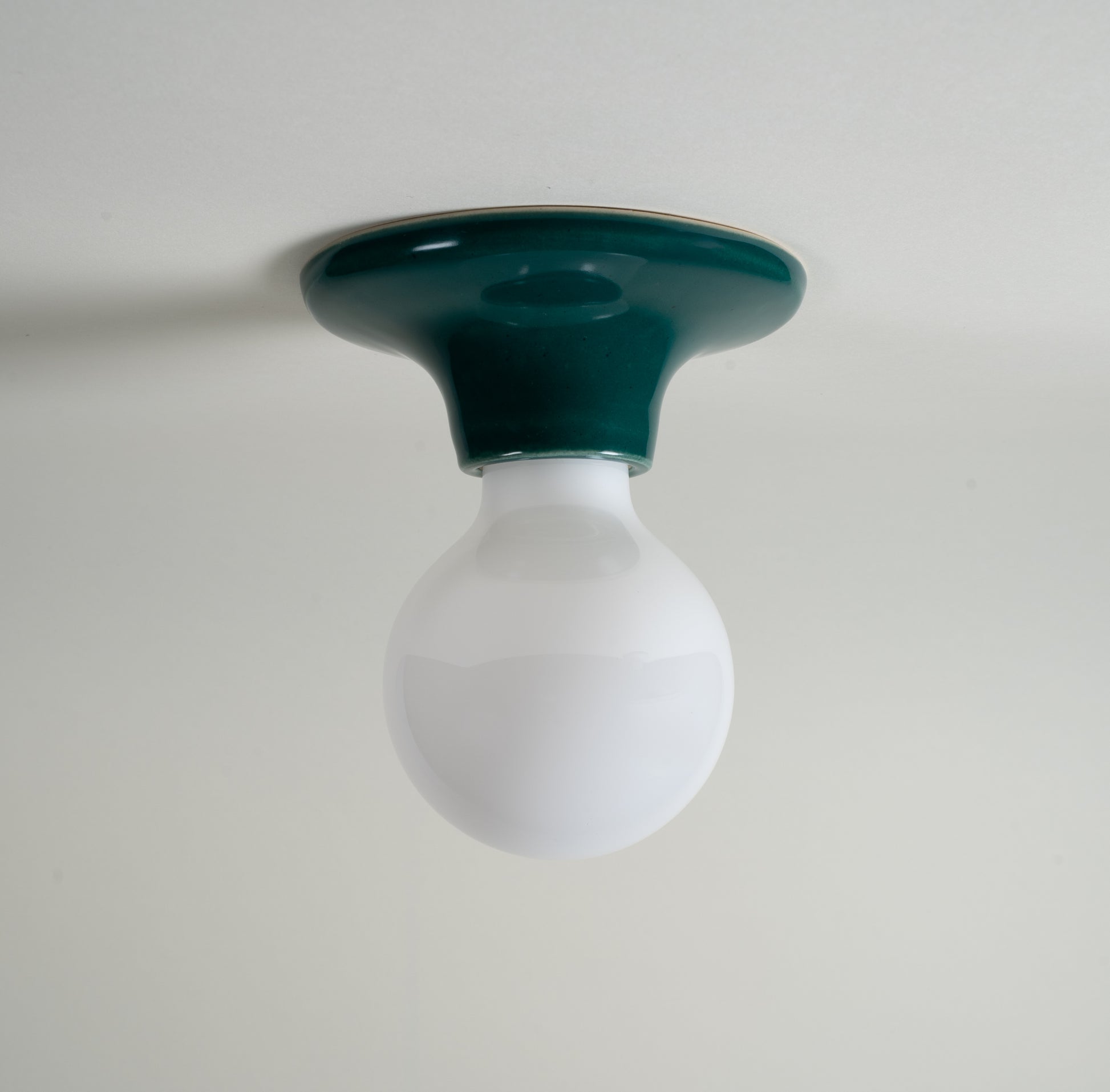 Designed to compliment a range of styles, it's equally at home as a wall or ceiling fixture and mounts to a standard junction box. Available in 18 glazes - subtle variations in surface texture are part of its unique character.
