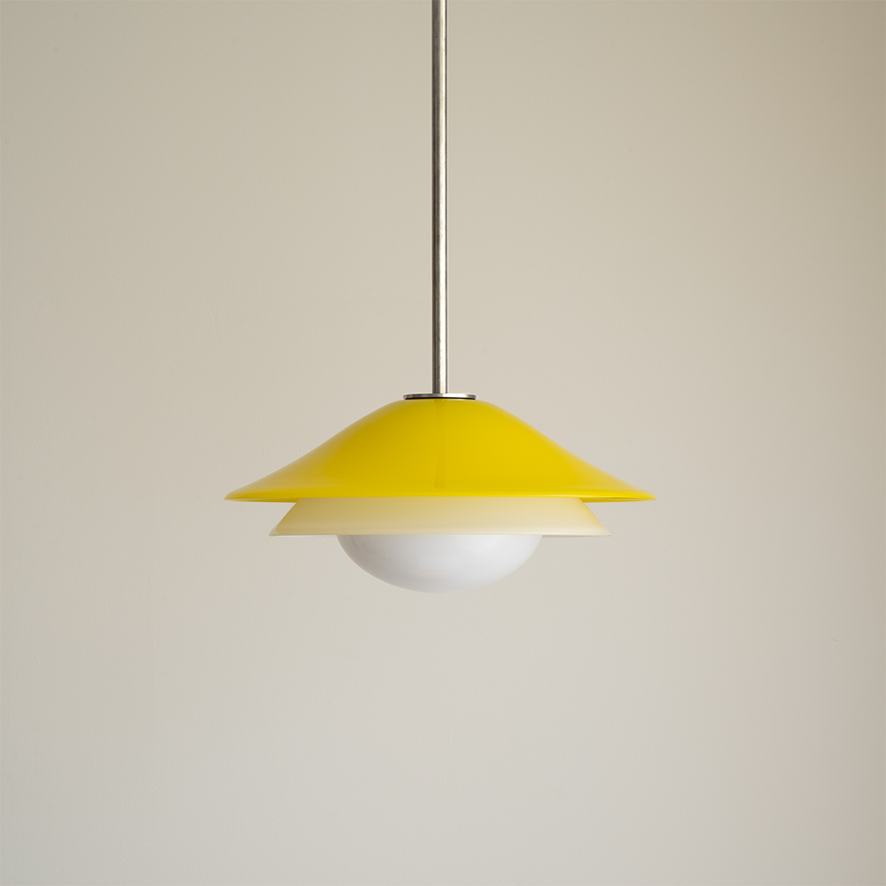 Inspired by the illusive tones created by the interactions of glass, the Jessica Pendant plays with absorption and reflections of layered colors.