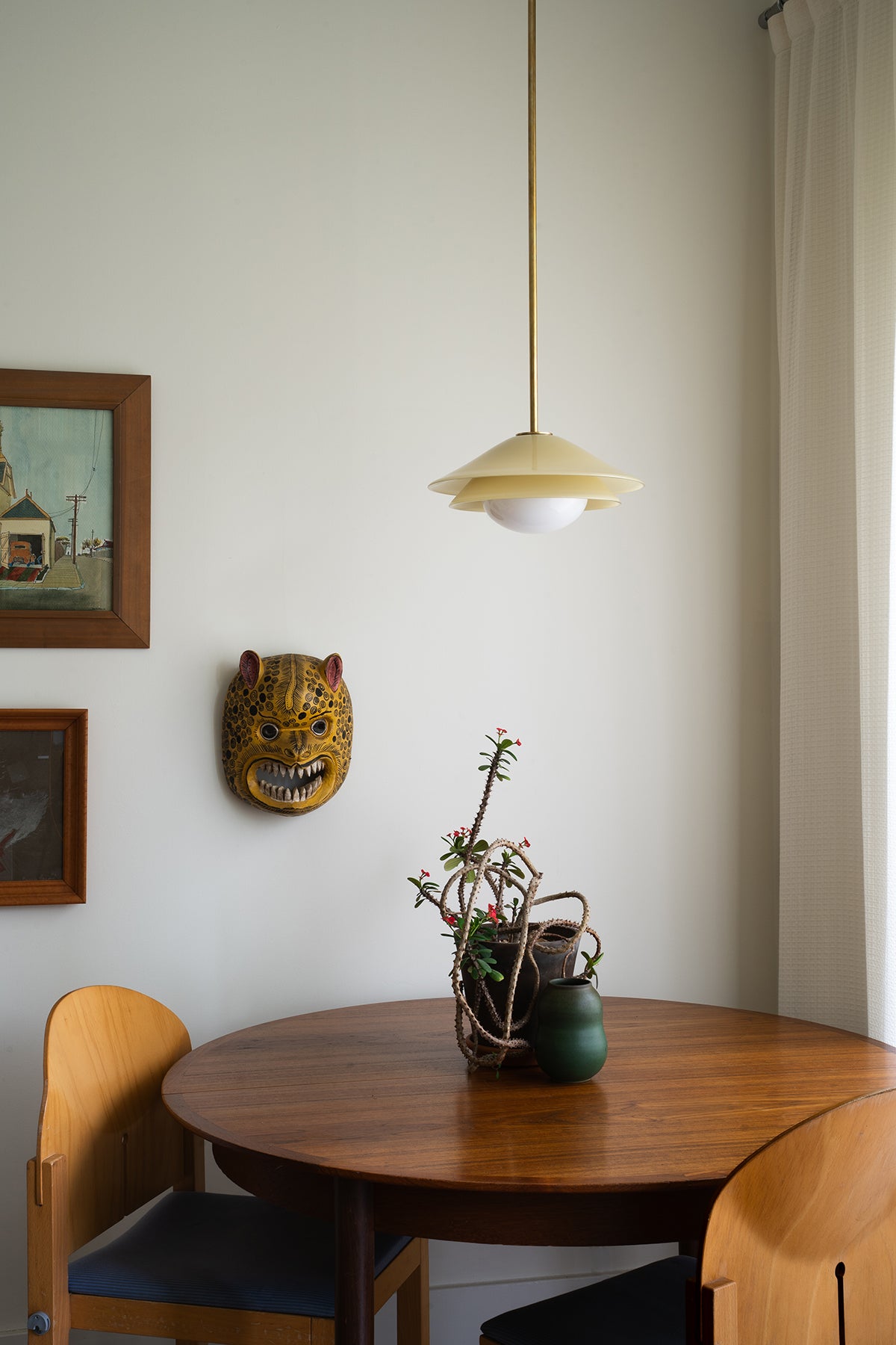Inspired by the illusive tones created by the interactions of glass, the Jessica Pendant plays with absorption and reflections of layered colors.
