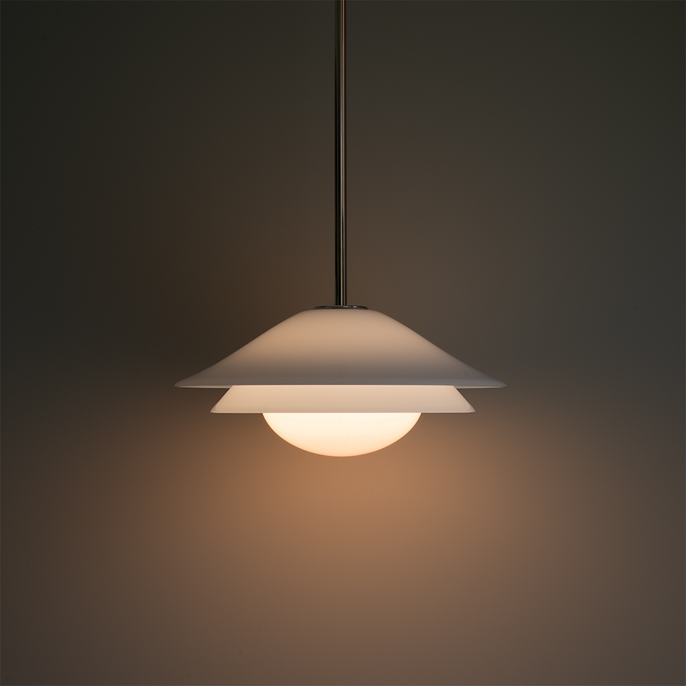Inspired by the illusive tones created by the interactions of glass, the Jessica Pendant plays with absorption and reflections of layered colors.