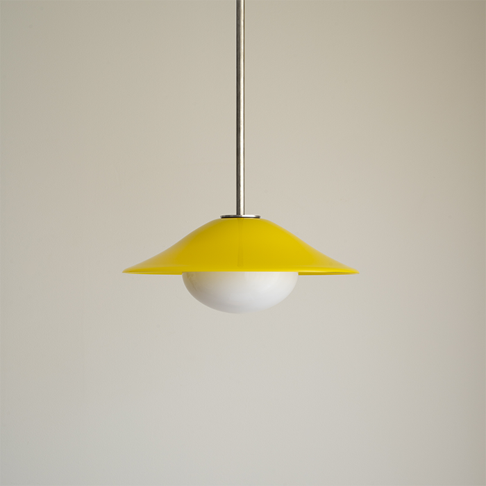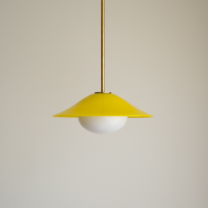 A streamlined profile of the Jessica Pendant, which offers a single color of the 14" shade paired with our elliptical diffuser.
