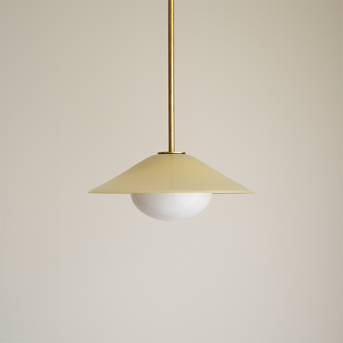 A streamlined profile of the Jessica Pendant, which offers a single color of the 14" shade paired with our elliptical diffuser.