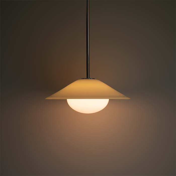 With a lighter profile, Jessica 14 can be suspended with either a chord or fixed rod.